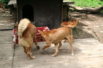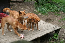 Im Juni 2011 besuchte ich ein Seminar auf der Eberhard-Trumler-Station, den Wolfswinkel. Thema war: "Rangordnungsverhalten der australischen Bergdingos." Dingos sind verwilderte Haushunde, die sich in ihrem Verhalten und ihrer Ausdrucksweise wieder dem Wolf angenähert haben. An ihnen kann man sehr gut das natürliche Rangordnungsverhalten beobachten.